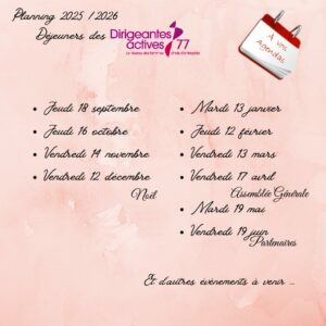 Nous suivre sur Linkedin: https://www.linkedin.com/company/dirigeantes-actives-77/