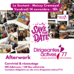 Le prochain évènement des Dirigeantes Actives sera un Afterwork !!! Tu viens? L’occasion parfaite de se retrouver, de rencontrer de nouvelles entrepreneures, de parler business…mais aussi de partager un moment simple, convivial et inspirant . RDV vendredi 14 novembre à 18h Le Sextant à Moissy Cramayel Prix adhérente : 10€ Date lmite d’inscription : Vendredi […]